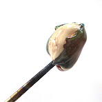 First, ditch the mandrel! A large glob of glass will be built off the end of a metal chopstick to be removed later. Add 1 ~ 1 ½ rods of clear glass to the stick as quickly as possible; shaping & smoothing can happen after it is on the stick. Build the glass off of the end of the stick; don't let the stick get too far up into the glass. Clear is a nice stiff base; colors will be added over it later.